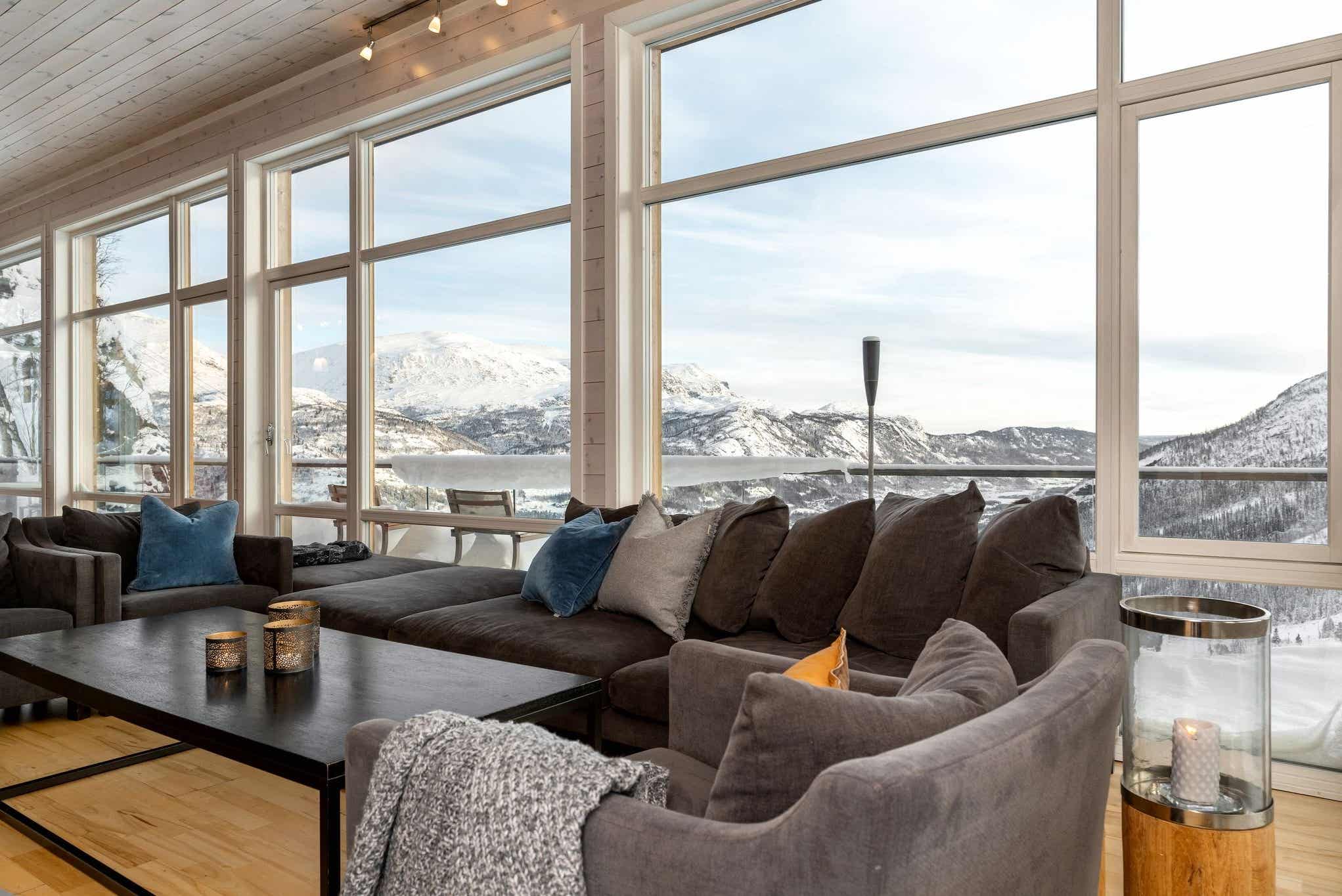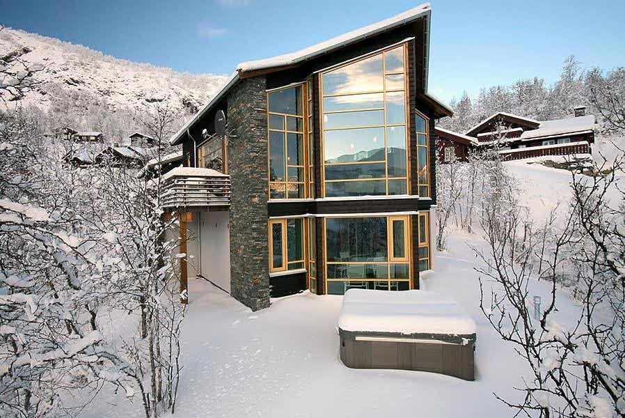 Storhytterne er i to etager med en spektakulær udsigt over Hemsedal skiområde, moderne indretning og rumlig planløsning.