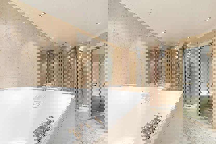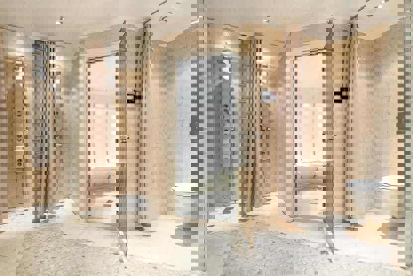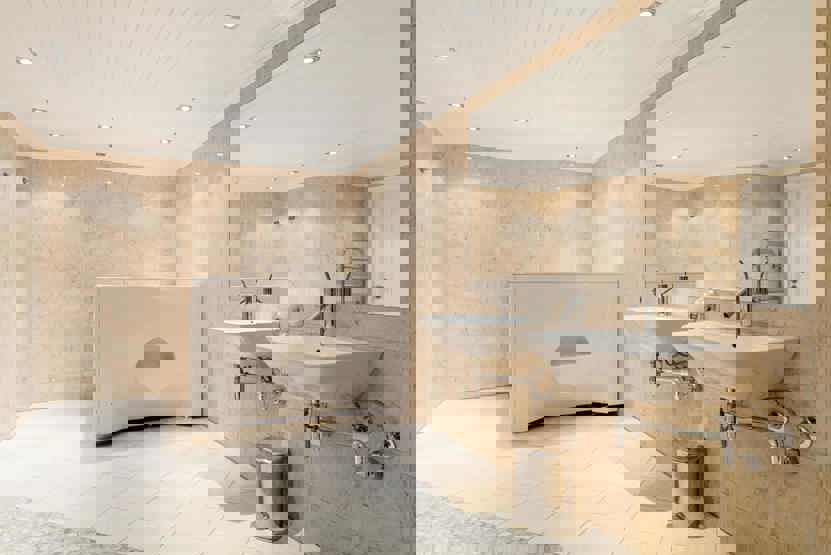 Bad 1: WC, bruser. Bad 2: WC, bruser. Bad 3: WC, bruser. WC. Bad 4: bruser, WC. Bad 5: WC. Bad 6: 2 brusere, WC, boblebadekar, dampsauna. Bad 7: WC.