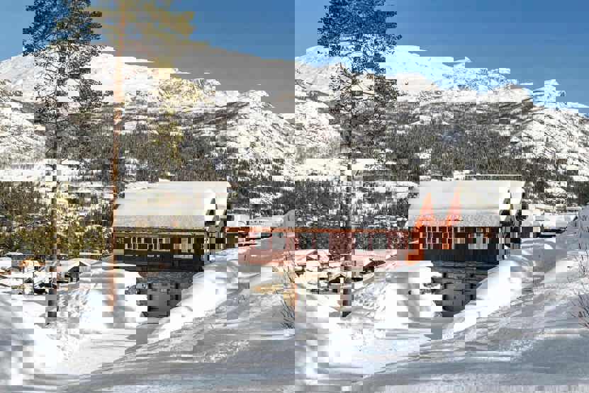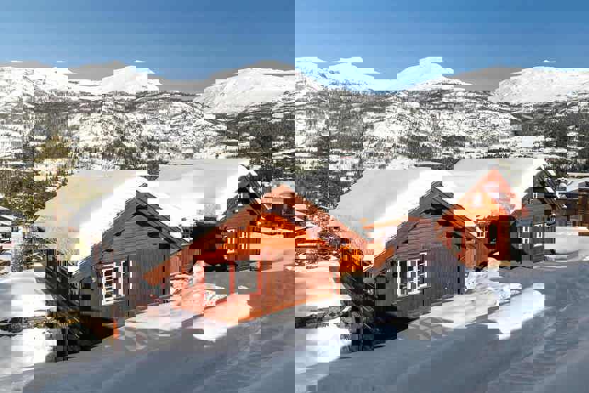 Kaggjin. Storhytte ligger i Hemsedal SkiSenter. Indtagende. Blot 450 m til lift og pist. Ved Skistar Lodge Hemsedal finder du restauranter, bar, supermarked, skiudleje, sportsbutik m.m. Velegnet til Børnefamilier og venner som gerne vil være selv, men også være tæt på børne faciliteter.