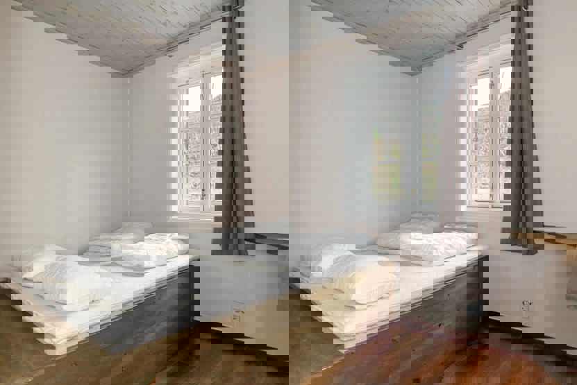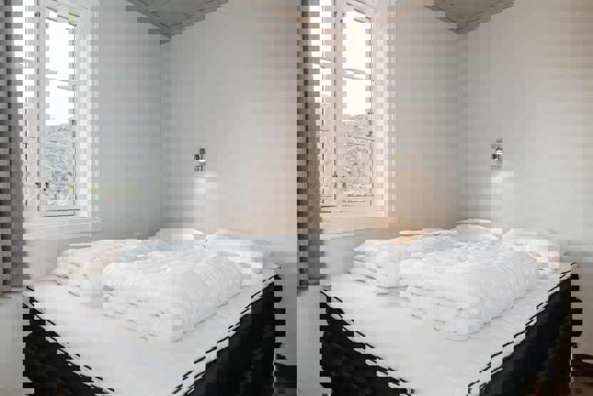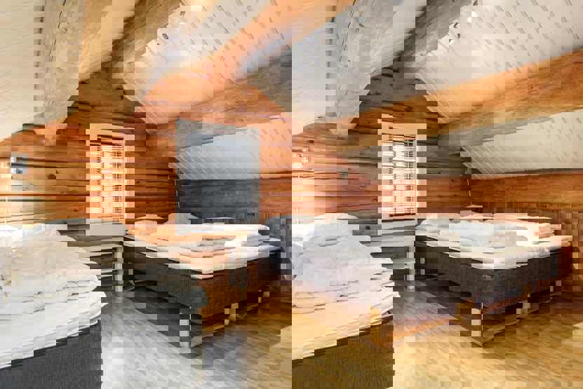 Soveværelse 1: 1 dobbeltseng 150 cm bred. Soveværelse 2: 1 dobbeltseng 150 cm bred. Soveværelse 3: 1 dobbeltseng 150 cm bred. Soveværelse 4: 1 dobbeltseng 150 cm bred. Soveværelse 5: 2 enkeltsenge 120 cm bred. Soveværelse 6: 2 enkeltsenge, 1 enkeltseng 120 cm bred.