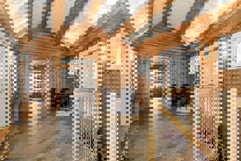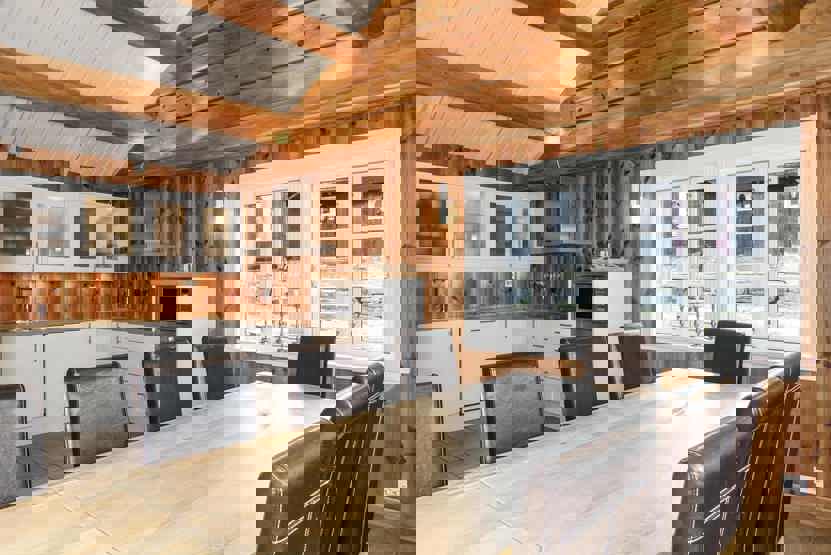 Hytte, 13+2 sengepladser, 200 m², alrum med køkkenafdeling, TV, 6 soveværelser, 6 brusere, 7 WC. damsauna, boblebadekar. Tørreskab, skotørrer. Skiopbevaring.