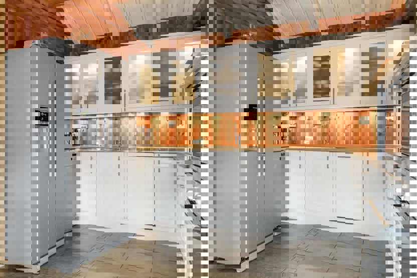 Indeholder bl.a. komfur, ovn, køleskab, fryser, opvaskemaskine, mikroovn.