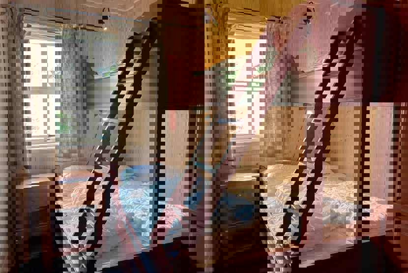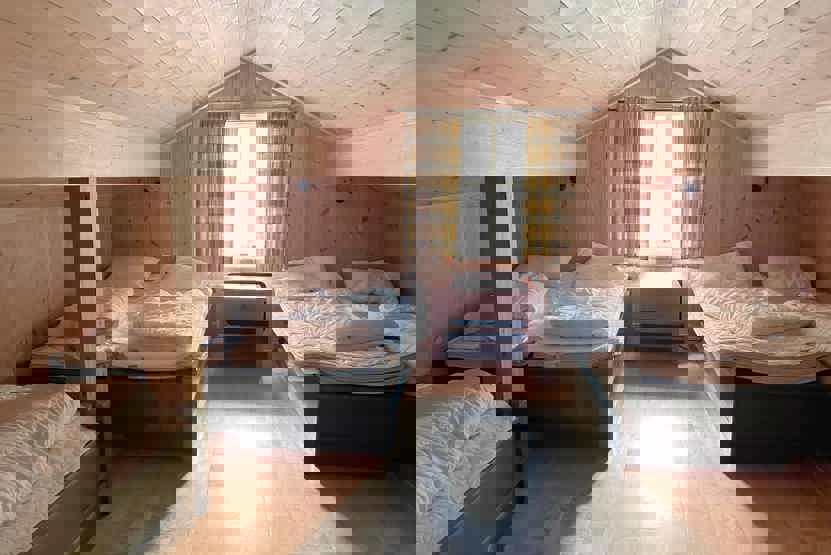 Soveværelse 1: 1 dobbeltseng. Soveværelse 2: 1 dobbeltseng. Soveværelse 3: 1 dobbeltseng. Soveværelse 4: 1 familie køjeseng med 150 cm bred underkøje. Soveværelse 5: 1 køjeseng med 150 cm bred underkøje. Soveværelse 6: 2 enkeltsenge, 2 dobbeltsenge. Soveværelse 7: 2 enkeltsenge, 2 dobbeltsenge.