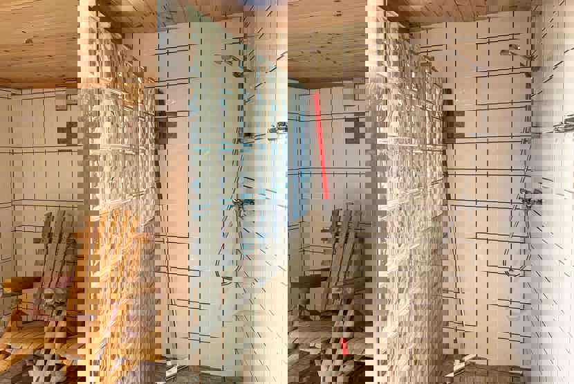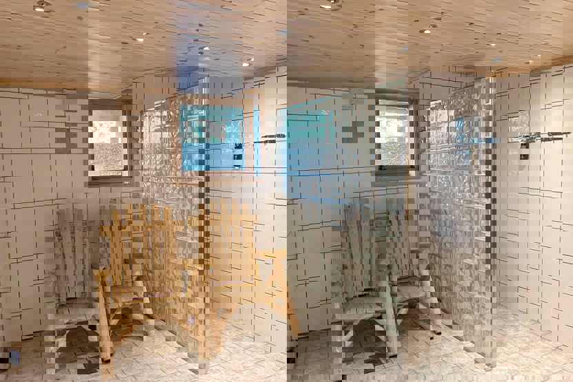 Bad 1: WC, bruser, sauna. Bad 2: WC, bruser. Bad 3: WC, bruser. Bad 4: bruser, WC. Bad 5: WC, bruser. Bad 6: WC, bruser. Bad 7: WC.