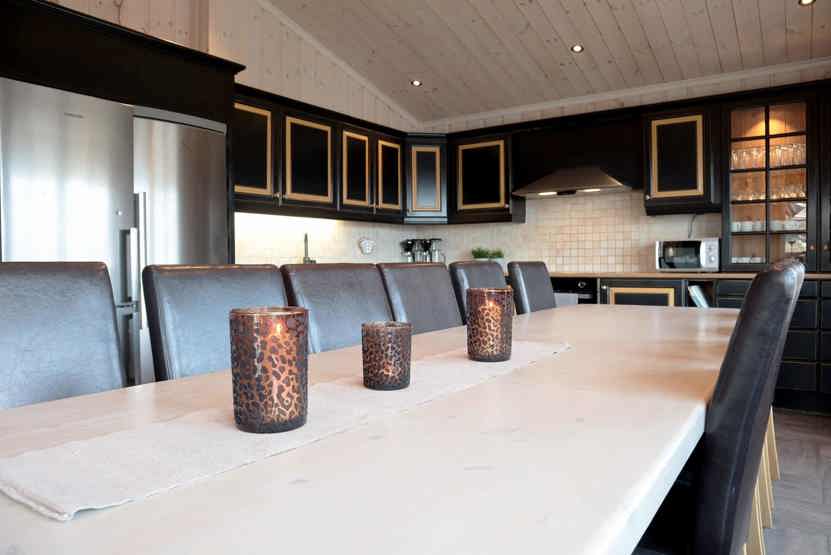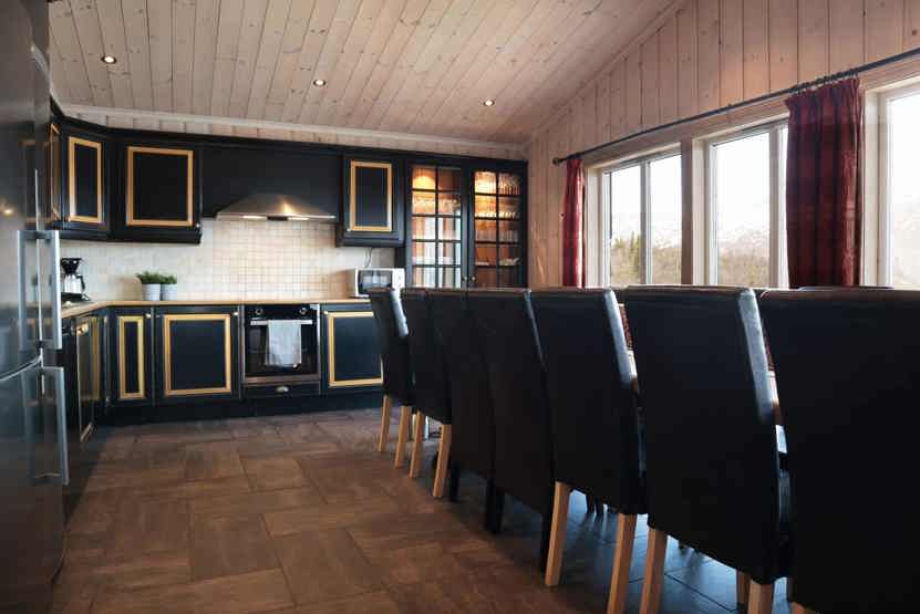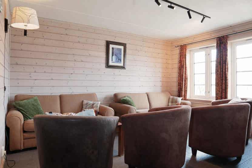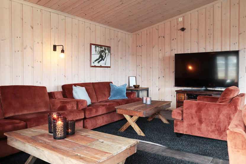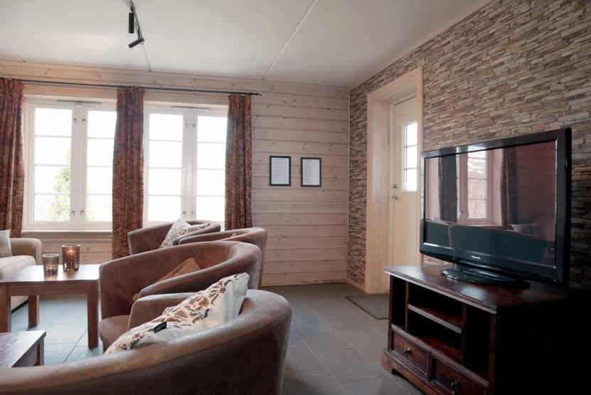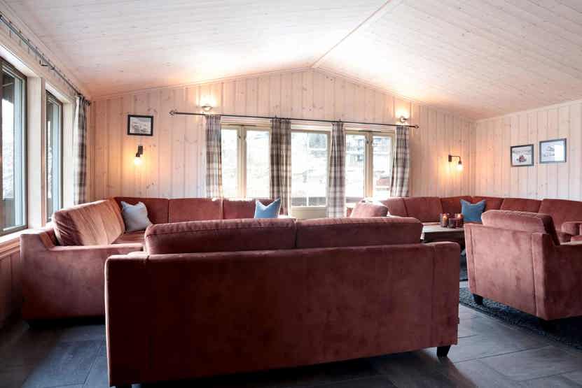 Hytte, 20 sengepladser, 260 m², opholdsstuer, TV, gaspejs og køkkenafdeling, 7 soveværelser, 3 brusere, 4 WC, badekar, 1 sauna. Vaskerum med vaskemaskine og tørrerum.