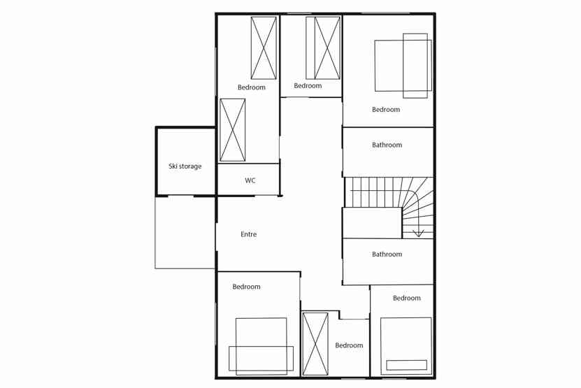 Hytte, 26 sengepladser, 260 m², alrum med 2 køkkenafdelinger, TV, 10 soveværelser, 4 bruser, 6 WC. Tørreskab, skotørrer. Skiopbevaring.