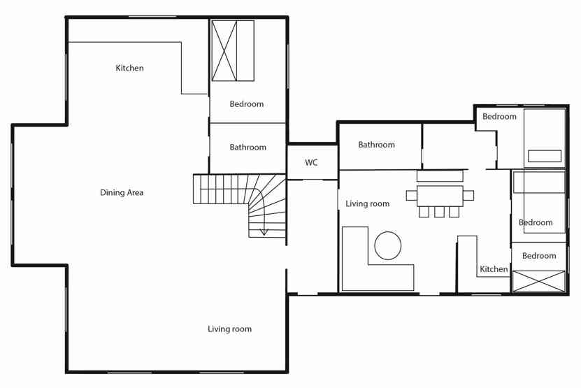 Bad 1: WC, bruser. Bad 2: WC, bruser. Bad 3: WC, bruser. Bad 4: WC, bruser. Bad 5: WC. Bad 6: WC.