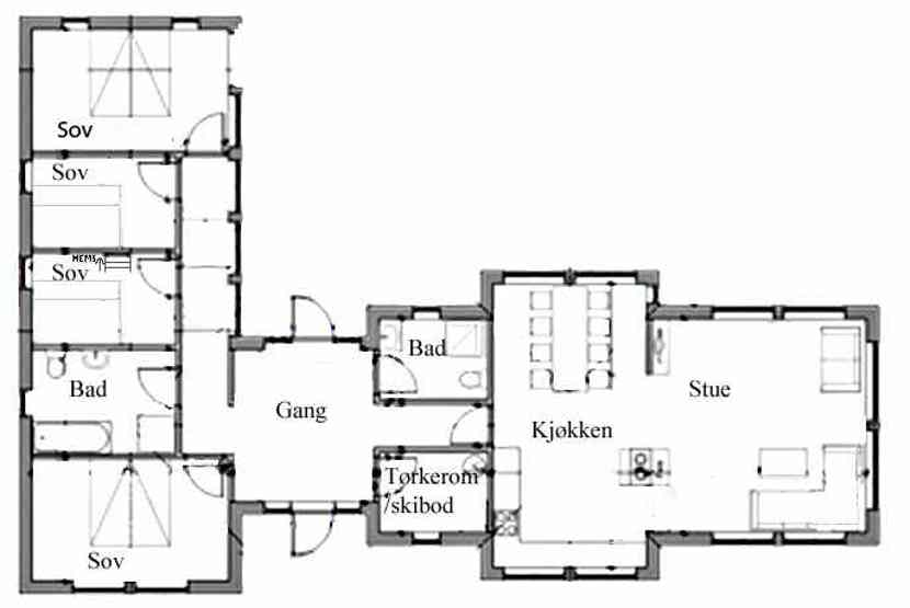 Bad 1: WC, bruser og badekar. Bad 2: WC, bruser. Bad 3: WC, bruser og sauna.