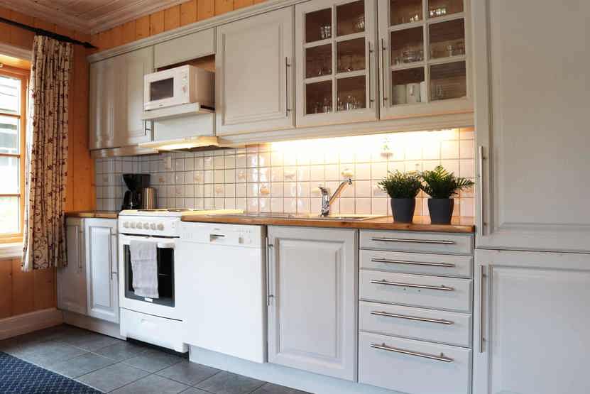Køkken: Køkkenet indeholder bl.a. opvaskemaskine, mikro, komfur med ovn, køleskab m/fryser.