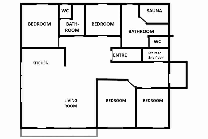 Badeværelser: Bad 1: bruser, WC, sauna. Bad 2: bruser, WC. Bad 3: bruser, WC