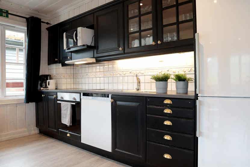 Køkken: Køkkenet indeholder bl.a. opvaskemaskine, mikro, komfur med ovn, køleskab m/fryser.