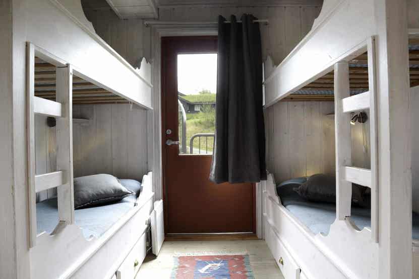 Soveværelse 1 + 2: 1 dobbeltseng. Soveværelse 3: 2 dobbeltsenge. Soveværelse 4: 1 køjeseng, 1 køjeseng med 120 cm bred underkøje. Soveværelse 5: 1 køjeseng med 120 cm bred underkøje. Soveværelse 6: 2 køjesenge.