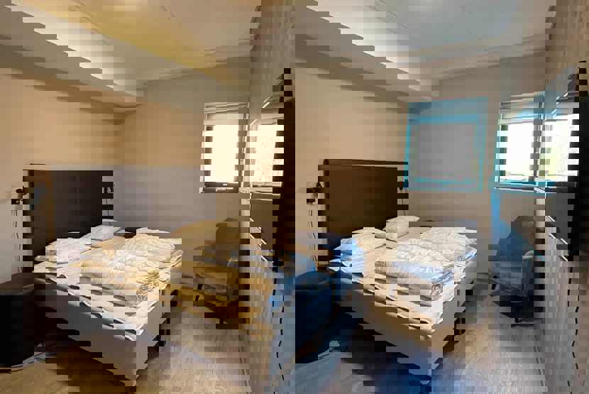Soveværelse-1= 1 dobbeltseng 180 cm bred. Soveværelse-2= 1 dobbeltseng 180 cm bred. Soveværelse-3= 2 enkeltsenge.