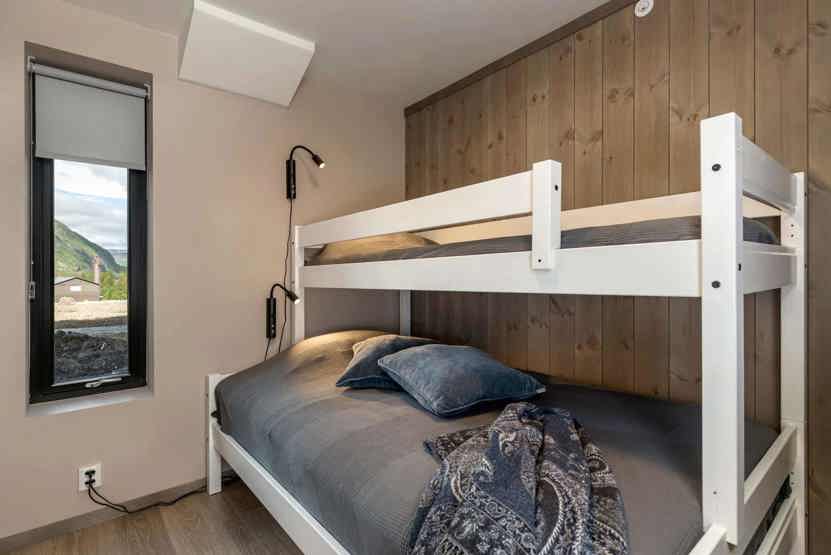 Soveværelse-1= 1 dobbeltseng 180 cm bred. Soveværelse-2= 1 køjeseng med 120 cm bred underkøje.