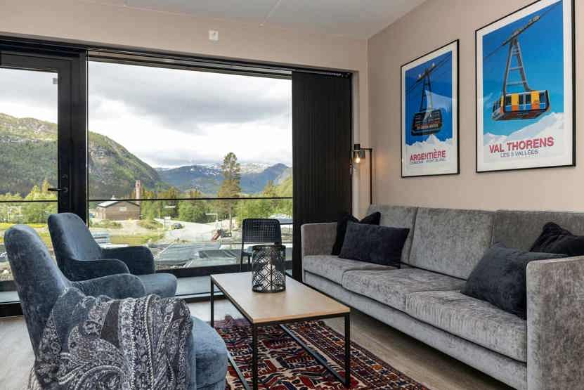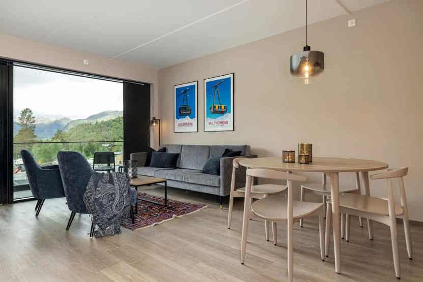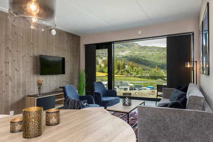 Lejlighed på 1 sal, 5 sengepladser, 55 m², opholdsstue, TV og køkkenafdeling, 2 soveværelser, 1 bruser, 1 WC. Vaskemaskine, tørretumbler, skotørrer. Skiopbevaring med skotørrer findes i bygning. Parkering mod gebyr (garage eller udendørs). Adgang til elbilopladere med type 2 stik.