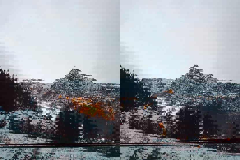Afstand til nærmeste lift/bakke kan være afhængig af natursne.