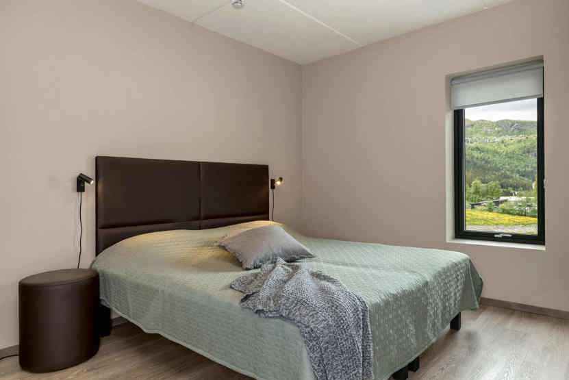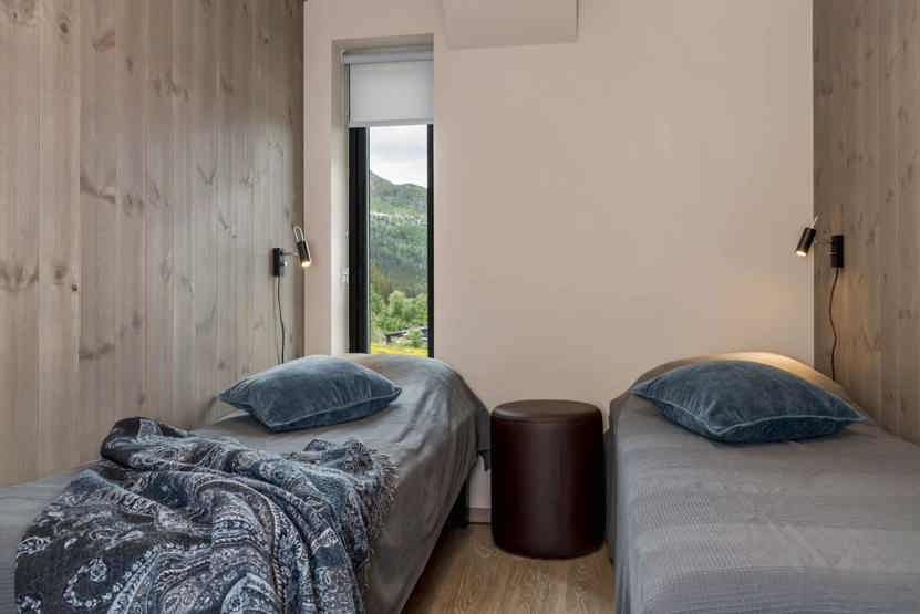 Soveværelse-1= 1 dobbeltseng 180 cm bred. Soveværelse-2= 2 enkeltsenge.