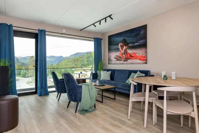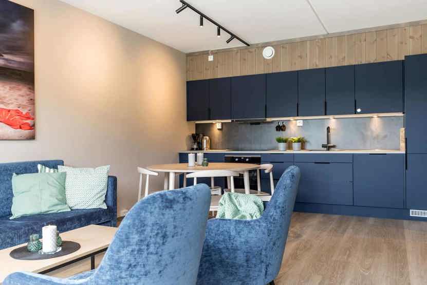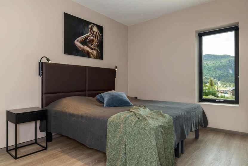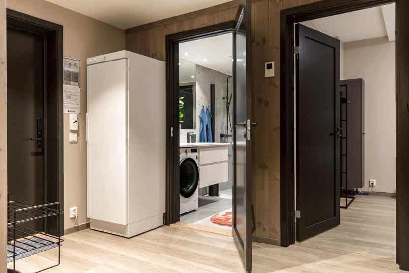 Lejlighed på 2 sal, 4 sengepladser, 55 m², opholdsstue, TV og køkkenafdeling, 2 soveværelser, 1 bruser, 1 WC. kombineret vaskemaskine/tørretumbler. Tørreskab, Skiopbevaring med skotørrer findes i bygning. Parkering mod gebyr (garage eller udendørs). Adgang til elbilopladere med type 2 stik.