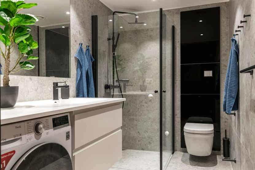 TV. kombineret vaskemaskine/tørretumbler, Tørreskab, Skiskab med skotørrer findes i huset. Balkon (der skovles ikke sne). Elevator findes i huset. Parkering mod gebyr (garage eller udendørs) på onepark.no, adgang til elbilopladere med type 2 stik mod betaling.