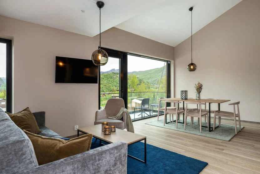Lejlighed på 3 sal, 7 sengepladser, 90 m², opholdsstue, TV og køkkenafdeling, 3 soveværelser, 2 brusere, 2 WC. Kombineret vaskemaskine/tørretumbler. Skiopbevaring med skotørrer findes i bygning. Parkering mod gebyr (garage eller udendørs). Adgang til elbilopladere med type 2 stik.