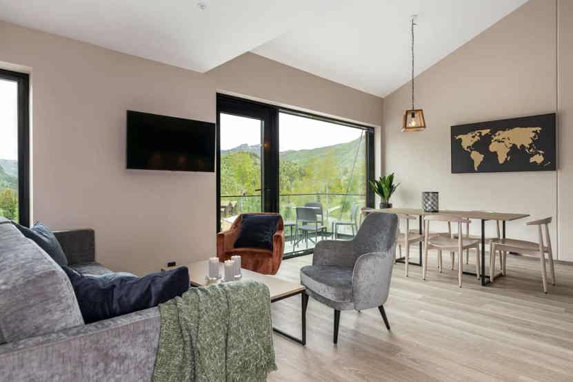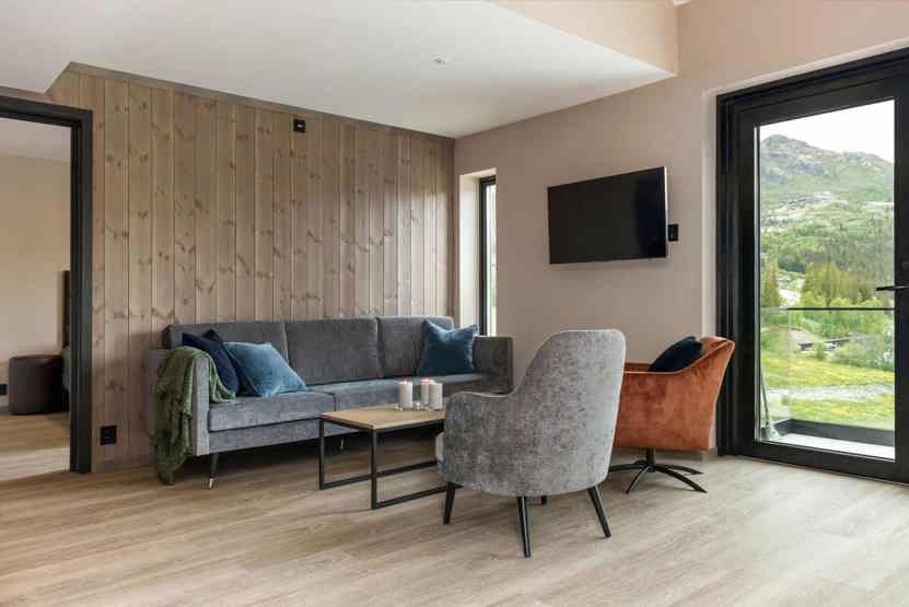 Totten Lodge 4405, moderne lejligheder med ski in/ski out beliggenhed i Hemsedal Skisenter. Byggeår 2022. Det familievenlige område ved Totteskogen ligger i gåafstand med 950 m til Hemsedal Fjellandsby med restauranter, supermarked og skiudleje.