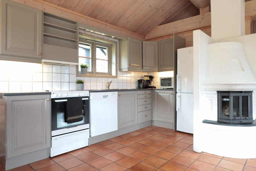 Indeholder bl.a. opvaskemaskine, mikroovn, komfur med ovn, køleskab m/fryser.
