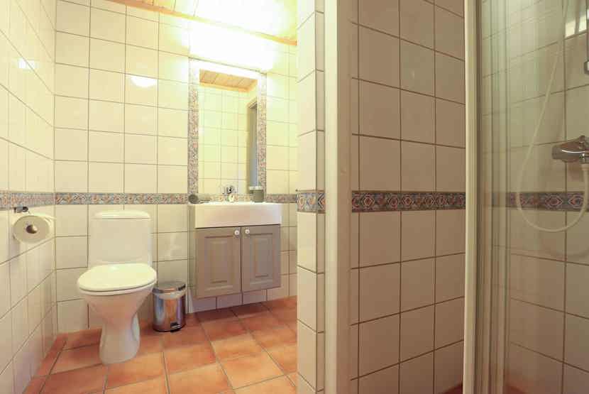 Bad 1: WC, bruser, sauna. Bad 2: WC, bruser. Bad 3: WC, bruser.