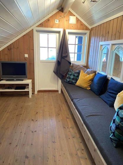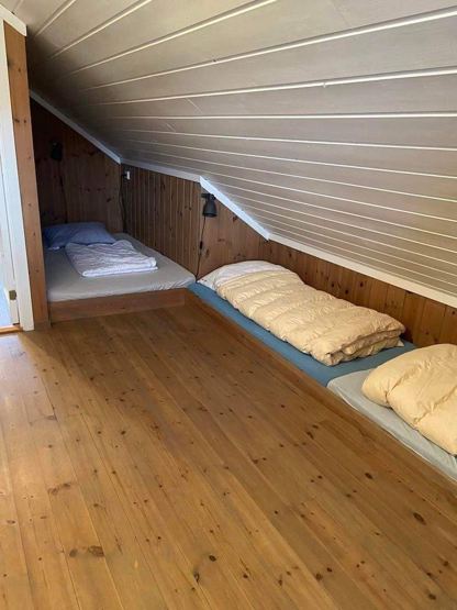 I tillegg er det enkelt innredet loftstue med 3 sengebrisker.
