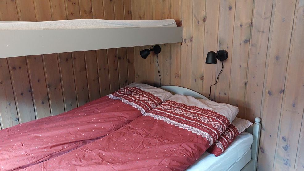 Soverom 1 (første etasje): Dobbeltseng og overkøye