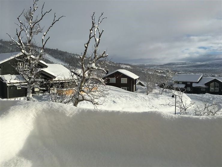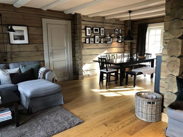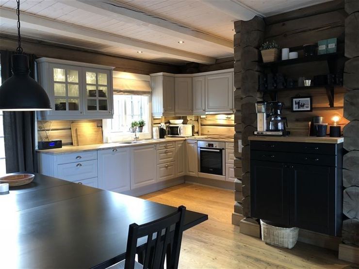 Hovdenutkollen 21 er flott innredet og passer bra for 4 par, to familier eller ett tett vennegjeng med sine 4 dobbeltsenger. Her får dere en sosial hyttetur med åpen løsning mellom kjøkken, spisestue og stue.