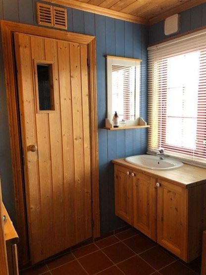 Første etasje: Baderom med dusj og badstue, separat toalett