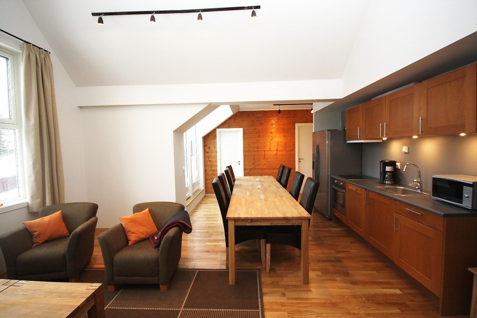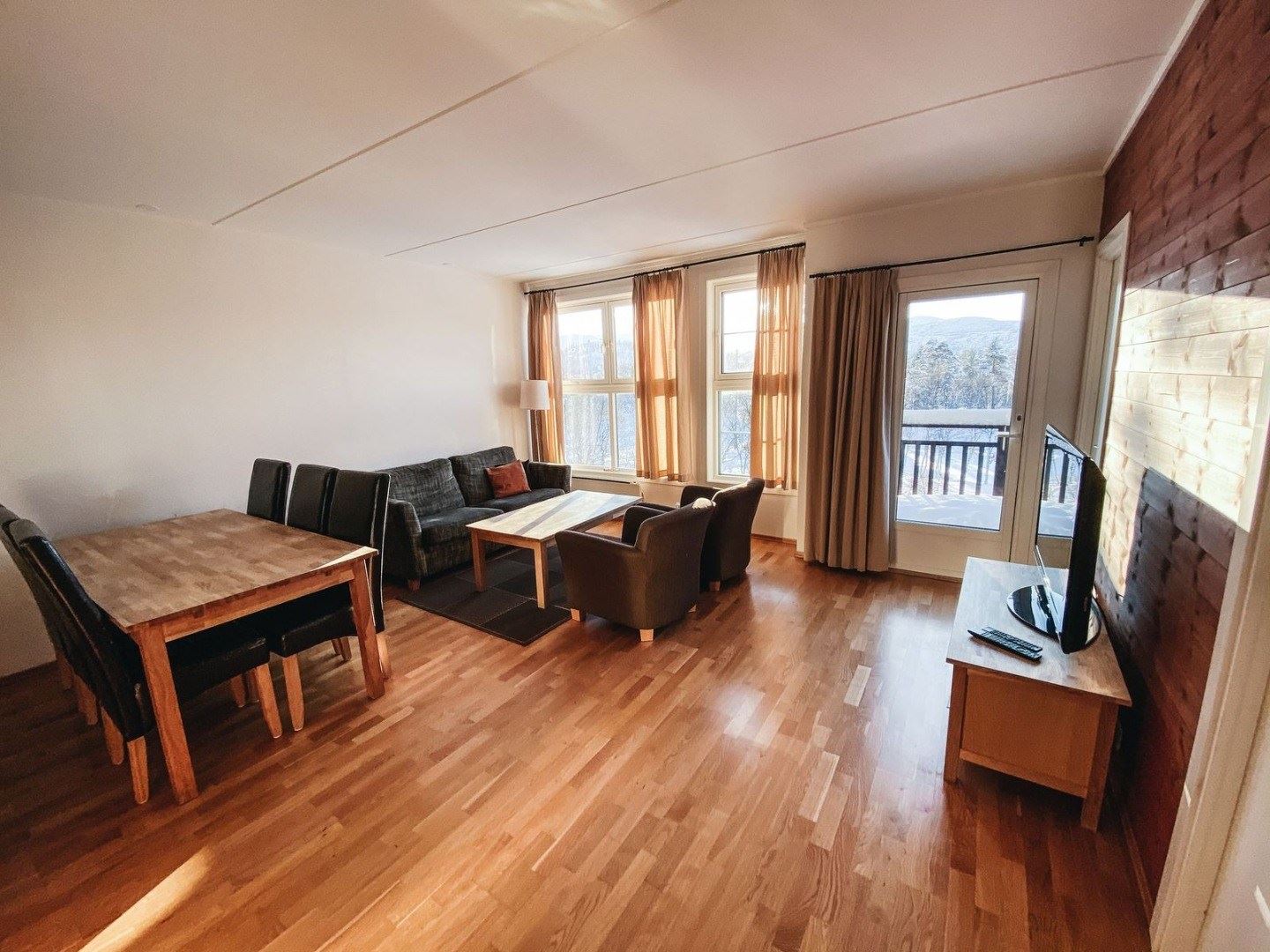 Leilighetene har terrasse eller balkong med flott utsikt, samt stor TV og gratis trådløst internett. Du kan velge om du vil bo med selvhushold, eller komme til ferdig oppredde senger og oppdekket bord i restauranten. Leilighetene har 6 senger/3 soverom eller 8 senger/4 soverom. Leilighetene har innendørs gjennomgang til hotellet og fasilitetene der.