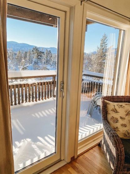 Vestvend leilighet med høy standard & terrasse/balkong med flott utsikt mot elv & fjell.
