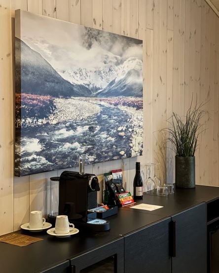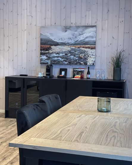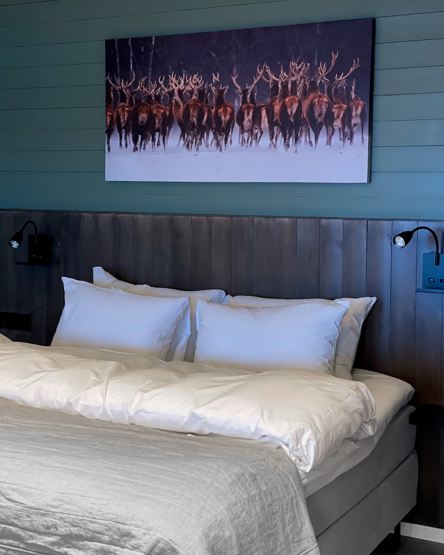 Denne suiten ligger i øverste etasje på Hovdestøylen med nydelig utsikt og fjellene i vest. Rommet er romslig, og har et spisebord med plass til 6 - perfekt for møter eller ligende. Rommet har og en sofa, som dobler som sovesofa, med ekstra plass til to personer ! Dette er det perfekte rom for noen som ønsker å unne seg litt ekstra på fjellet !