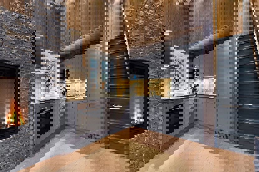 Enheden har komfur, køleskab, fryser, opvaskemaskine og kaffemaskine.