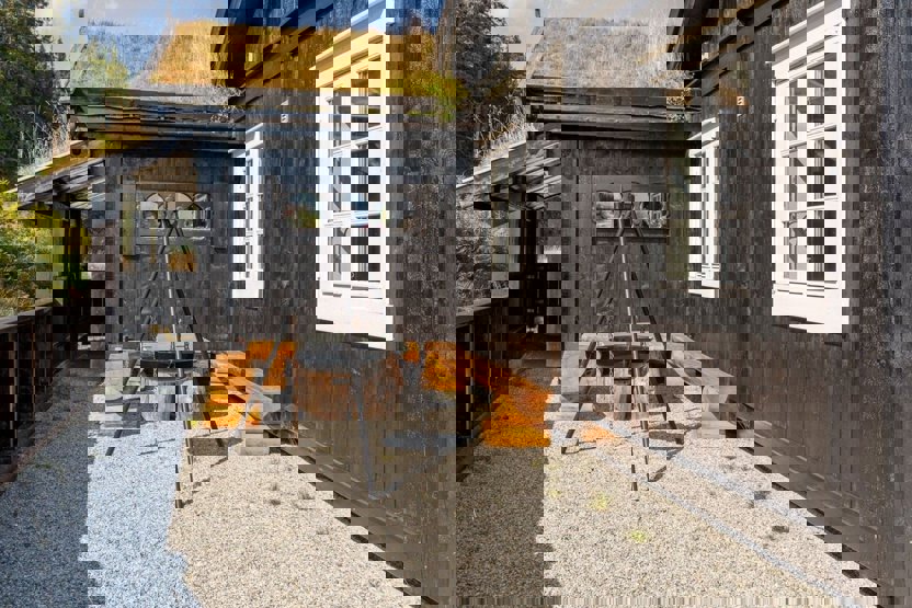 Ekstra info: Opholdsstue med brændeovn, TV. Kælderstue med sofa og TV. Vaskemaskine, tørretumbler. Terrasse, grill. Indendørs parkering for 2 biler, ellers udendørs parkering.