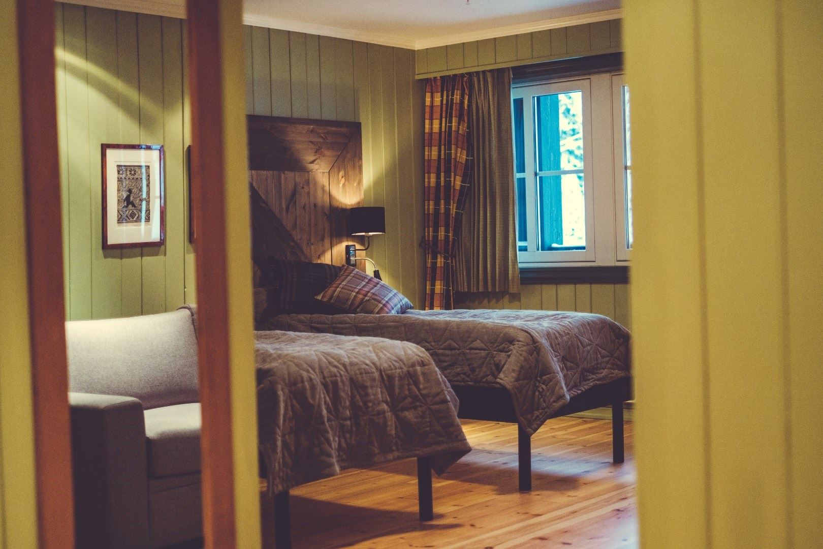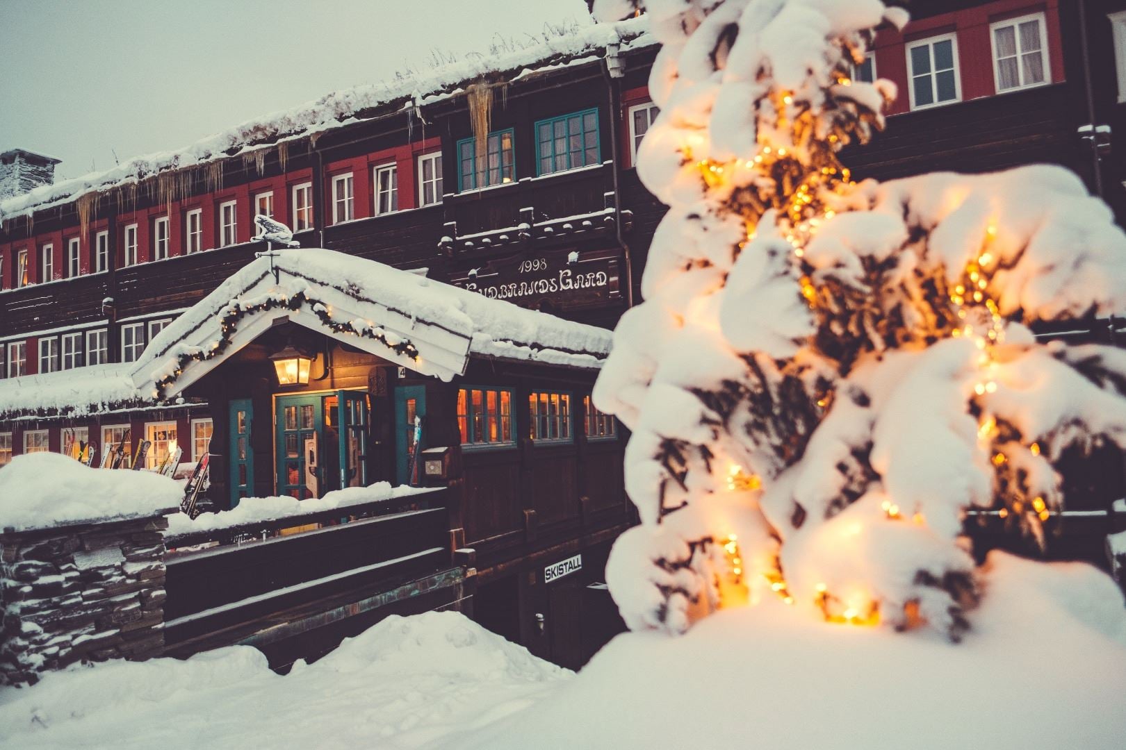 Gudbrandsgard Hotel Midt på Kvitfjell, Mellomstasjonen. Hotel med Ski in / Ski out til alpin og langrend. Super dejligt og familievenligt hotel i typisk norsk stil med tømmervægge, natursten og tørv på taget. Her er der kræset for de små detaljer med en lækker og dejlig atmosfære. Den indbydende lobbybar har altid ild i pejsen. Skibaren har Ski in / Ski out terrasse. Her er skistald og liftkortsalg. Gratis Wi-Fi overalt på hotellet. Alle de 79 værelser har fået et stort løft og er indrettet i samme hyggelige stil, malede trævægge, parketgulve og eksklusive detaljer i farve- og stofvalg. Her er lagt vægt på trivsel, velvære - sjæl, kan man vel sige.