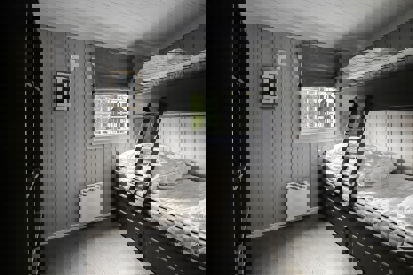Soveværelse 1+2: 1 dobbeltseng (160cm x 200cm). Soveværelse 3+4: 1 familiekøjeseng 120 cm/ 90cm x 200cm.