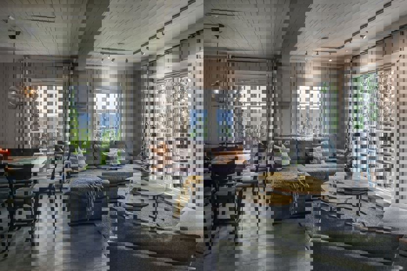 Gudbrandsgard Hytte 7, Flot renoveret hytte i hyggeligt hyttetun på østsiden af Kvitfjell. GudbrandsGard hytterne har perfekt beliggenhed ved Mellomstasjonen og med Ski in / Ski out til alpint og langrend. Her er gåafstand til alle faciliteter: til børneområde, skiudleje, privatskiskolen. Langrendsløjper ca. 50 m. Østsiden i Kvitfjell, også kaldet "Mellomstasjonen", er kendt for Olympiabakken, hvor der årligt arrangeres World Cup i styrtløb og super-g. Her finder man noget virkelig udfordrende skiløb, selv for den bedste skiløber. Østsiden har dog også grønne, blå og røde piste, et fint børneområde, samt terrænpark. Ønsker man en pause fra pisten kan Skitorget byde på skicafé, afterski, købmand og når sulten melder sig flere spisesteder. Gudbrandsgard hotell tilbyder fx let frokost i lobbybaren eller på den solrige terrasse når vejret tillader det. På hotellet findes velværeafdeling, svømmebassin (mod betaling).
