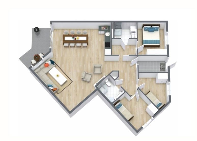 Lejlighed A210 - 6+2 personer. 105 kvm. 3 soveværelser. Åben planløsning med fuldt udstyret køkken med spiseplads til 8 personer. Opholdsstue med sofagruppe, gaspejs, TV. 2 brusere, 2 WC. Vaskemaskine og tørretumbler. Balkon. 1 garageplads. Lejligheden er privatejet, interiør kan variere.