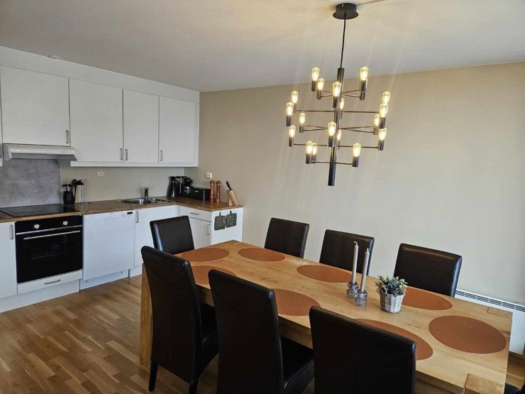 Lejlighed B011 - 6+2 personer. 102 kvm. 3 soveværelser. Åben planløsning med fuldt udstyret køkken med spiseplads til 8 personer. Opholdsstue med sofagruppe, gaspejs, TV. 2 brusere, 2 WC. Vaskemaskine. Balkon. 1 garageplads. Lejligheden er privatejet, interiør kan variere.