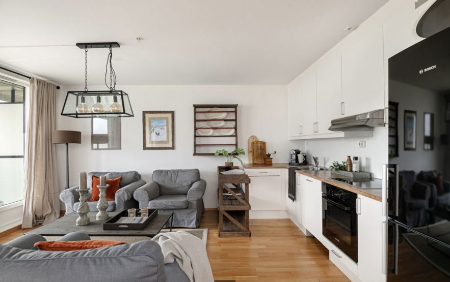 Ekstra info: Opholdsstue med gaspejs, TV. Vaskemaskine, tørretumbler. Balkon. Opvarmet parkering til 1 bil + udendørs parkering.