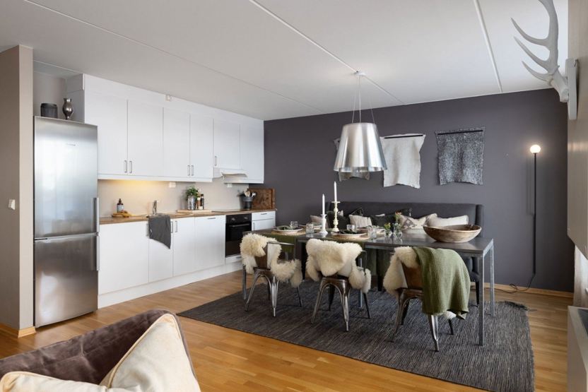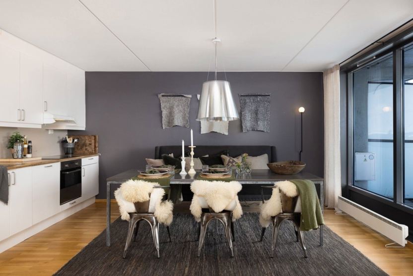 På kjøkkenet finner du komfyr, kjøleskap, fryser, oppvaskmaskin og Nespresso kapselmaskin. I spisestuen er det sitteplass til 6 personer, perfekt for hyggelige måltider sammen.