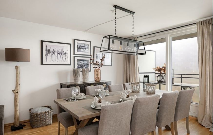 Krystallen B013 tilbyr alt du trenger for et avslappende opphold. På kjøkkenet finner du komfyr, kjøleskap, fryser, mikrobølgeovn, oppvaskmaskin, kaffetrakter og Nespresso kapselmaskin. I spisestuen er det sitteplass til 8 personer, perfekt for hyggelige måltider sammen.