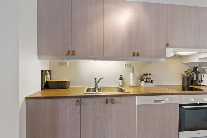 Krystallen B202 tilbyr alt du trenger for et avslappende opphold. På kjøkkenet finner du komfyr, kjøleskap, fryser, oppvaskmaskin og kaffetrakter.