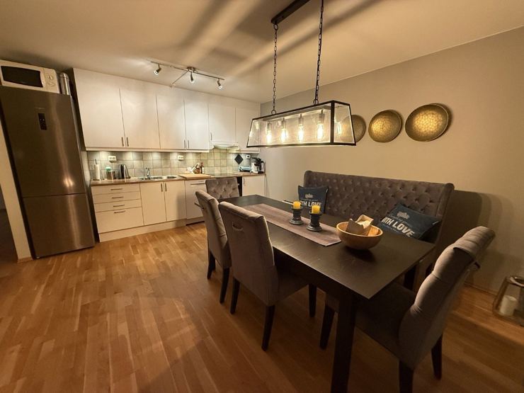 I spisestuen er det sitteplass til 7 personer, perfekt for hyggelige måltider sammen.