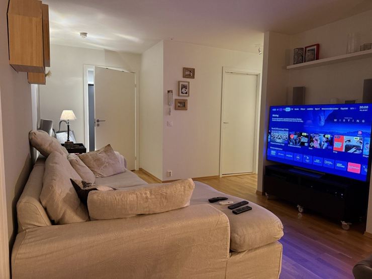 Etter en dag med aktiviteter kan du slappe av i stuen som er utstyrt med sofa og tv.