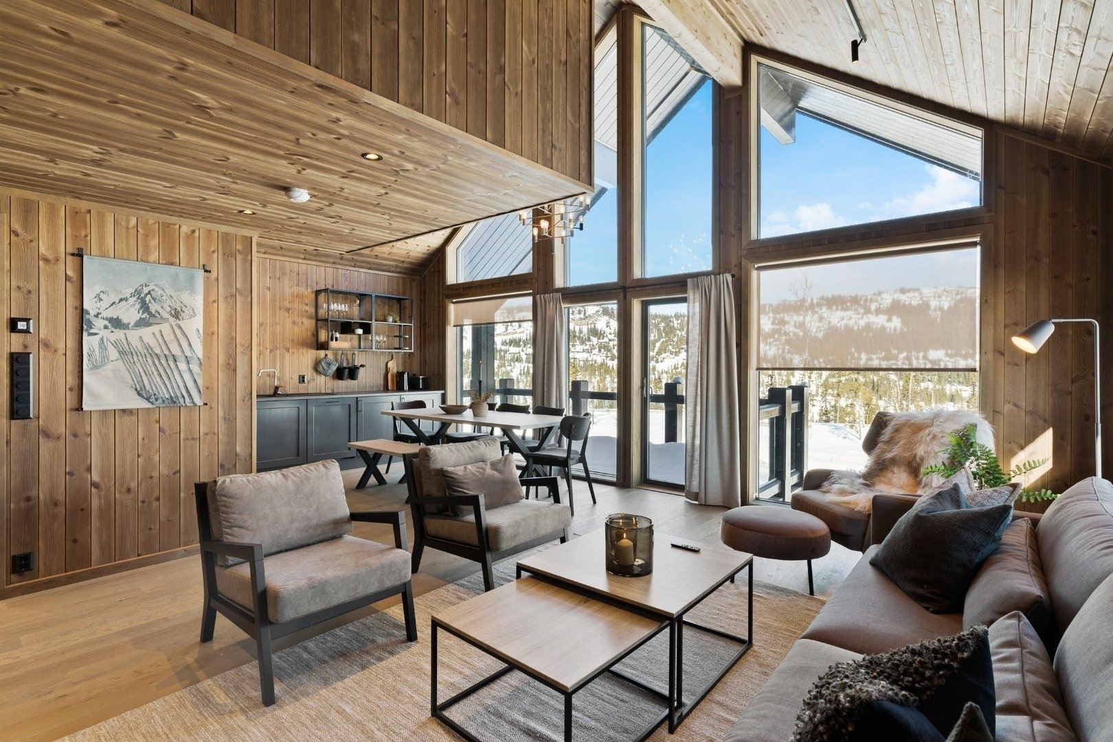 Myrsetervegen 79 Nybygget hytte i 2 etager. Flot og smagfuld indrettet hytte med store panoramavinduer og og kig til alpincenteret. Udsøgt beliggenhed i hytteområde Varden, Kvitfjells nyeste fjeldområde. Her bor man tæt på både alpin og langrend, et populært område for dem der vil prøve begge dele med Ski in / Ski out. Transportgondol knytter området til Vestsiden og en 6-sæders stolelift går til toppen af den Varden. På toppen af Varden finder du Varden restaurant, og med gondolen, som går over vestsiden, er du tæt på skiudlejning, sportsbutik, dagligvarer, flere restauranter og afterski. Varden har 5 km familievenlige piste alle grønne eller blå, som gør området perfekt for hele familien. Børnenes favorit Vardeskogen er en skovløjpe med spændende figurer..