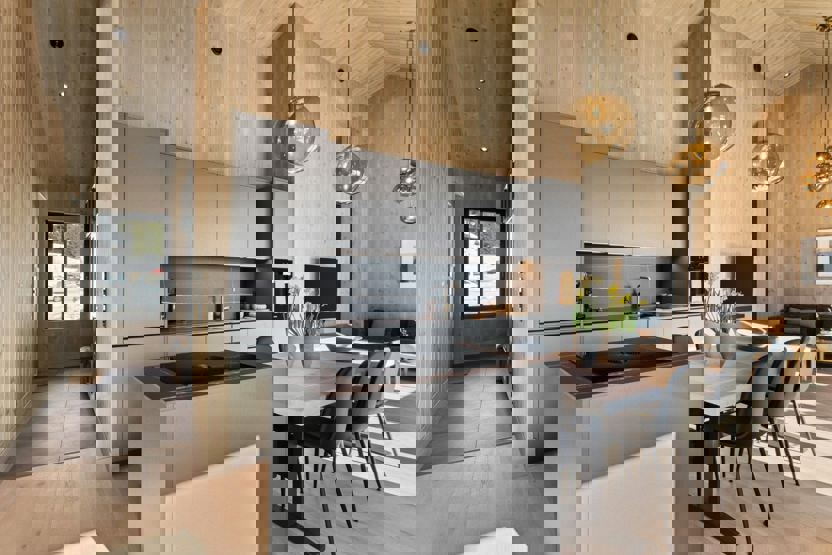 Enheden har komfur, ovn, køleskab, fryser, opvaskemaskine, kaffemaskine.