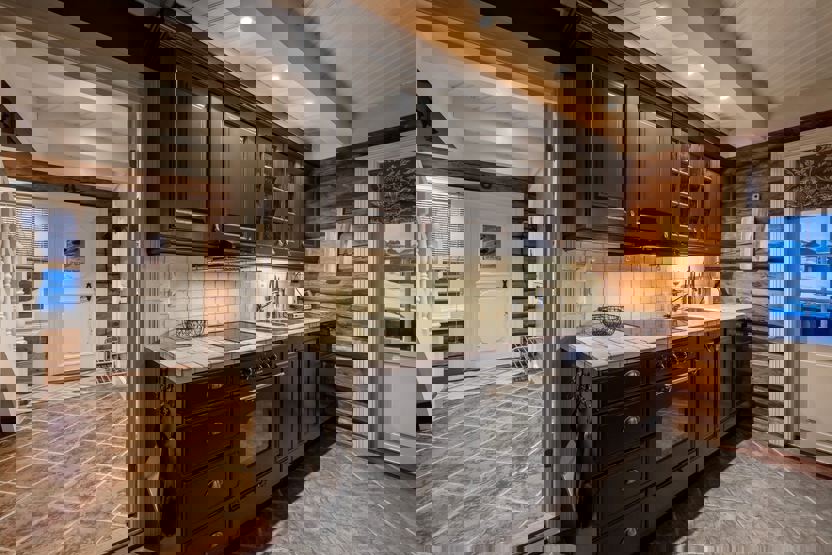 På kjøkkenet finner du komfyr, kjøleskap, fryser, mikrobølgeovn, oppvaskmaskin og kaffetrakter.